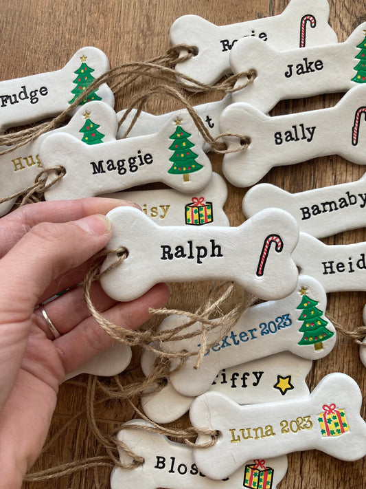 Christmas dog bone personalised decoration / pets / personalised / clay / handmade