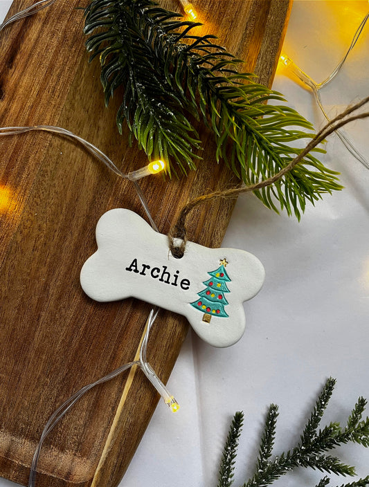 Christmas dog bone personalised decoration / pets / personalised / clay / handmade